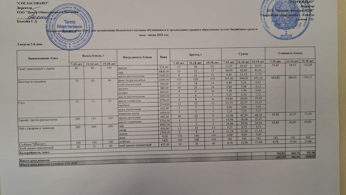 Асхана мәзірі 19.12.2023 » №208 мектеп-гимназия