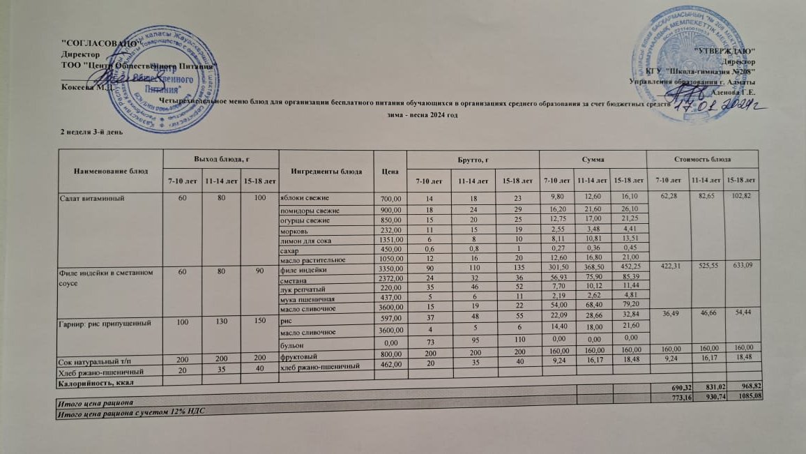 Асхана мәзірі 17.01.2024 » №208 мектеп-гимназия