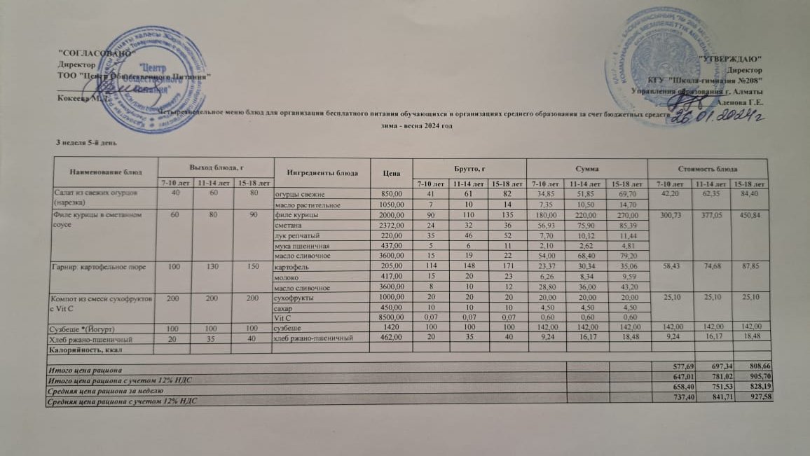 Асхана мәзірі 26.01.2024 » №208 мектеп-гимназия