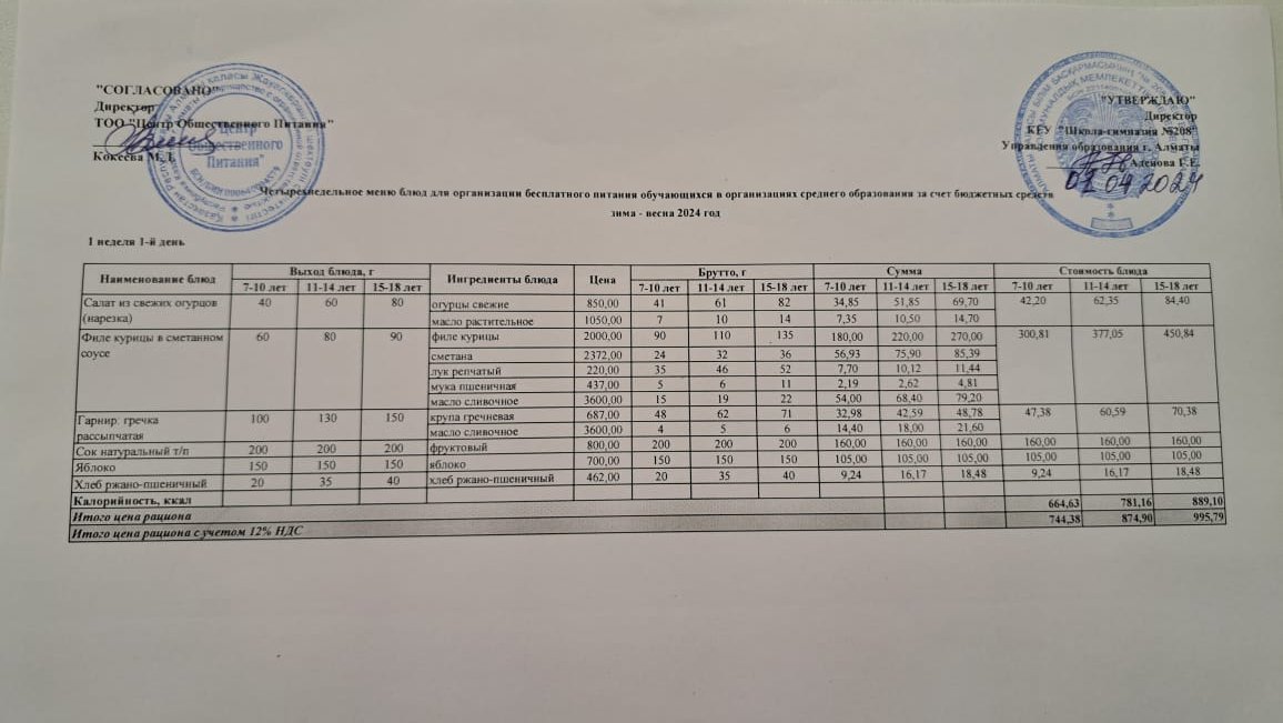 Асхана мәзірі 01.04.2024 » №208 мектеп-гимназия
