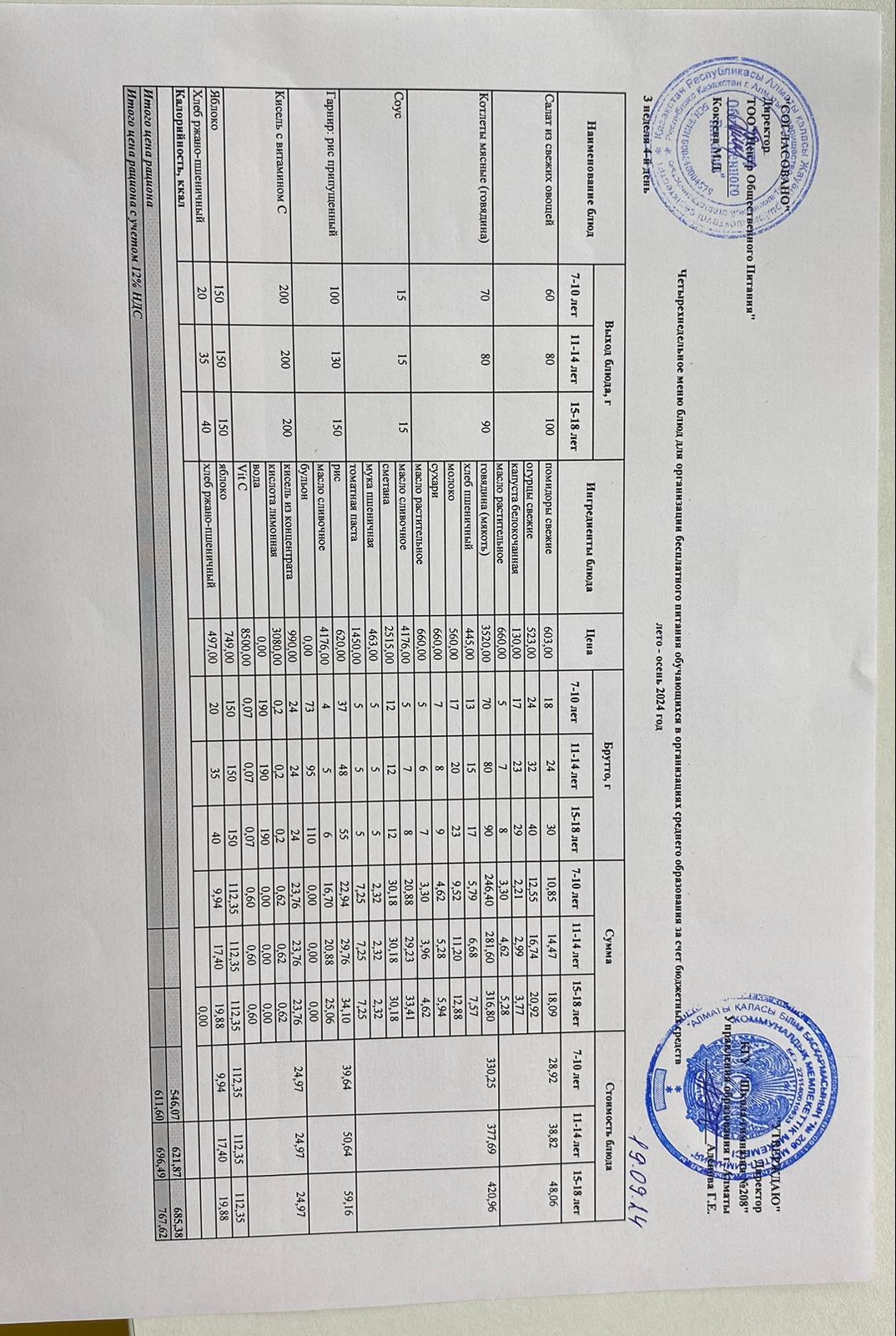 19.09.2024ж Асхана мәзірі » №208 мектеп-гимназия