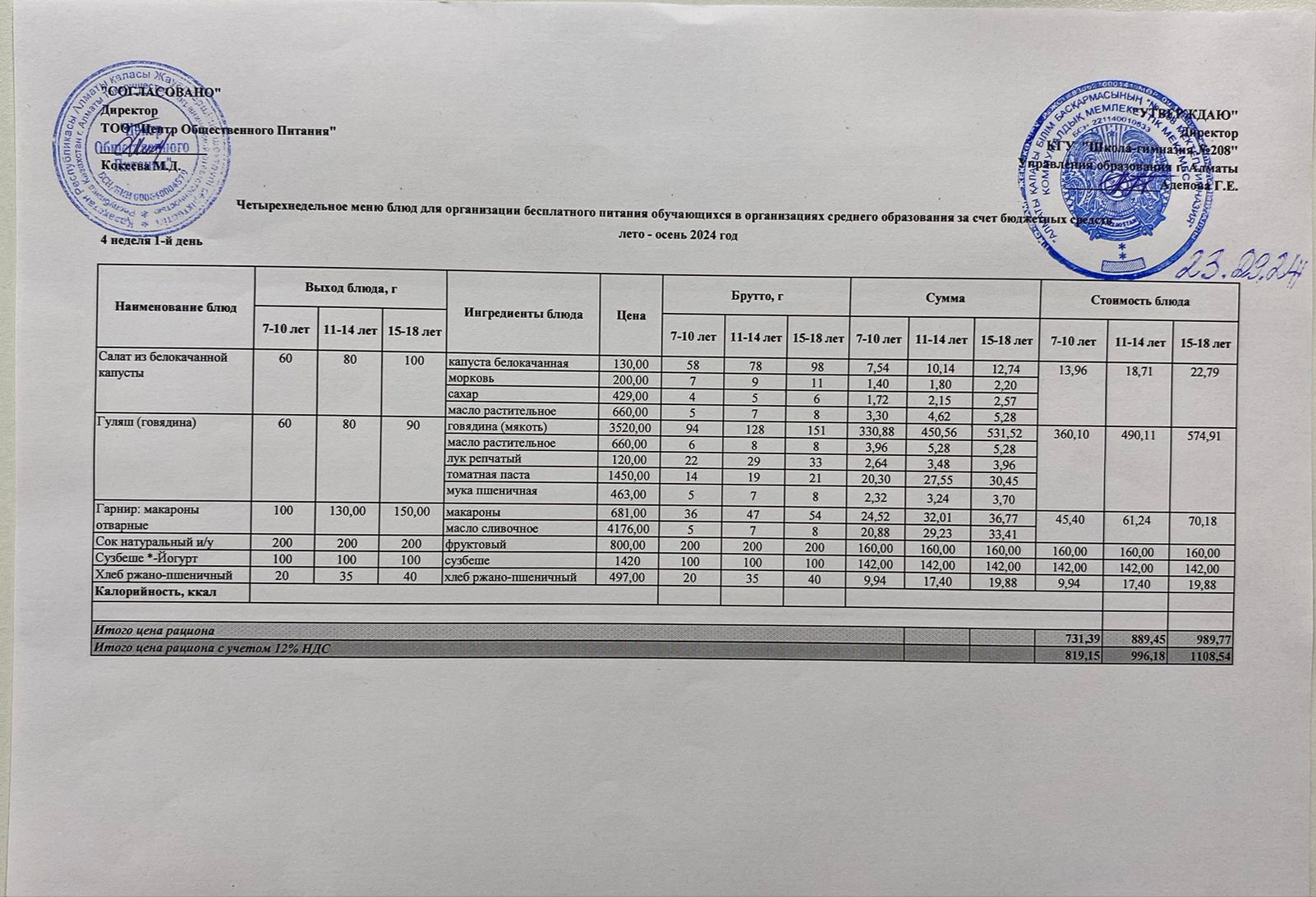 23.09.2024ж Асхана мәзірі » №208 мектеп-гимназия