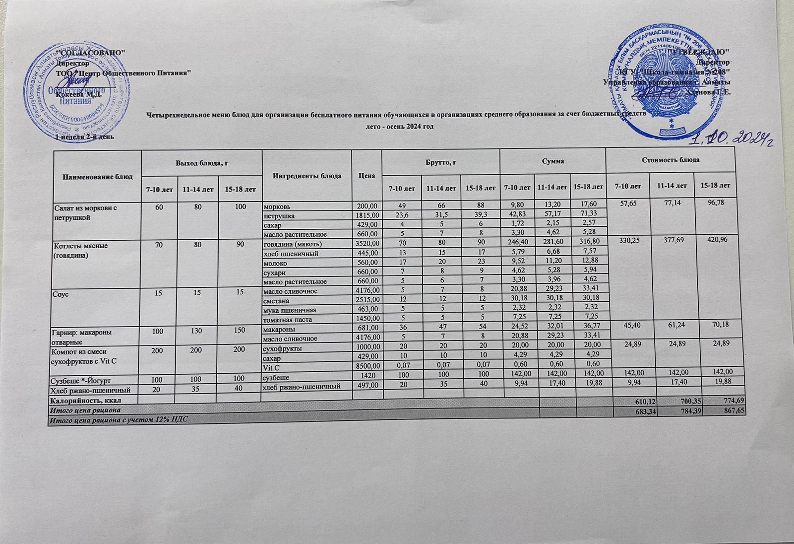 01.10.2024ж Асхана мәзірі » №208 мектеп-гимназия