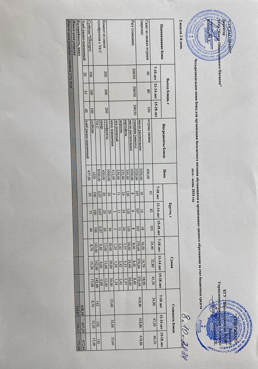 08.10.2024ж Асхана мәзірі