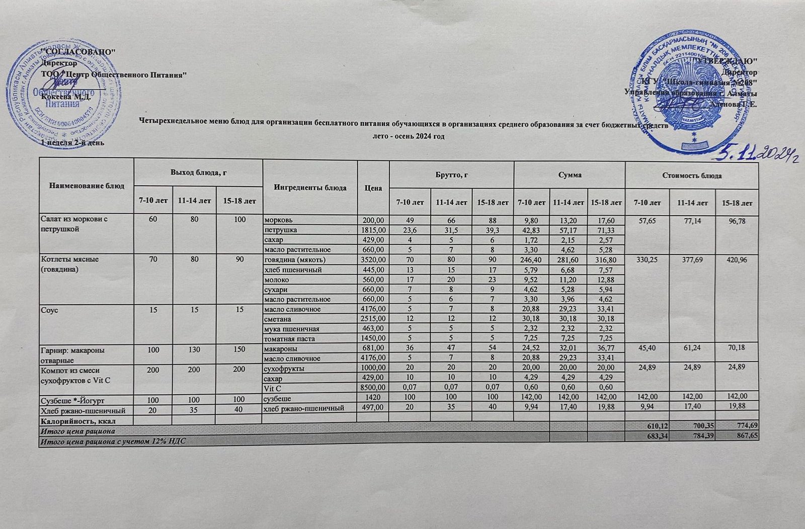 05.11.2024ж Асхана мәзірі » №208 мектеп-гимназия