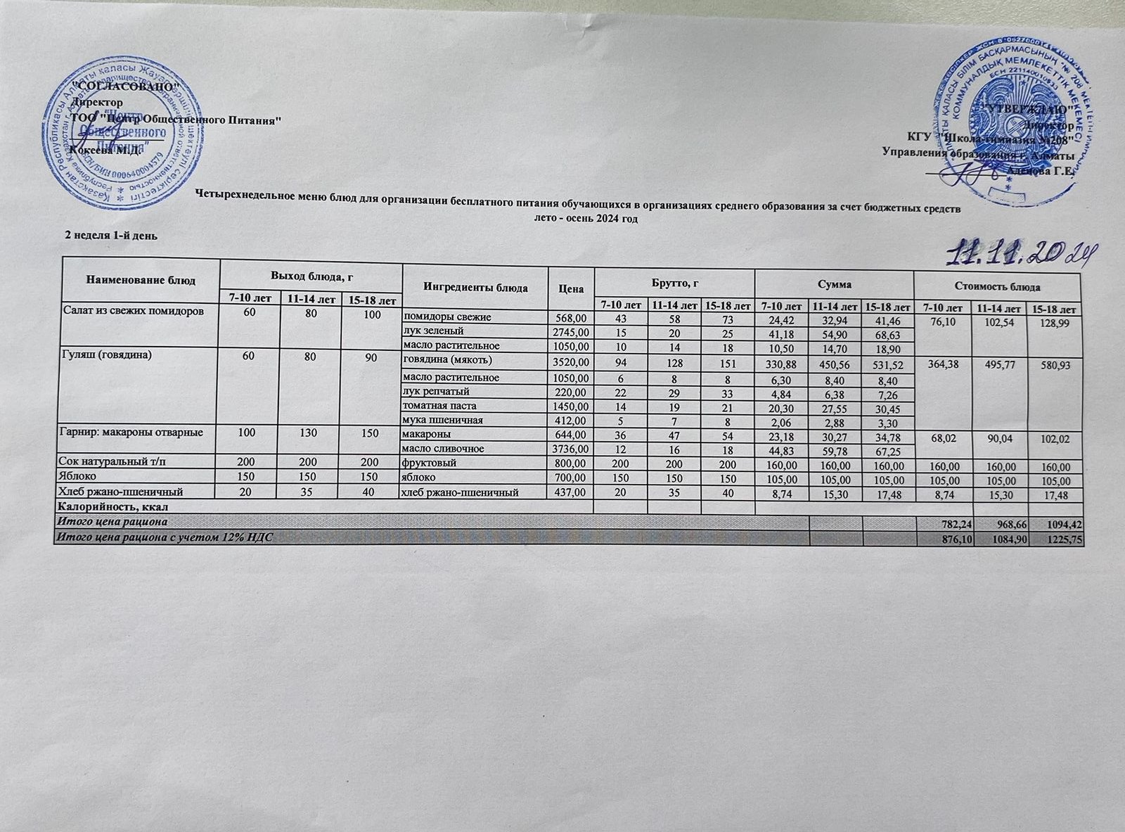 11.11.2024ж Асхана мәзірі » №208 мектеп-гимназия