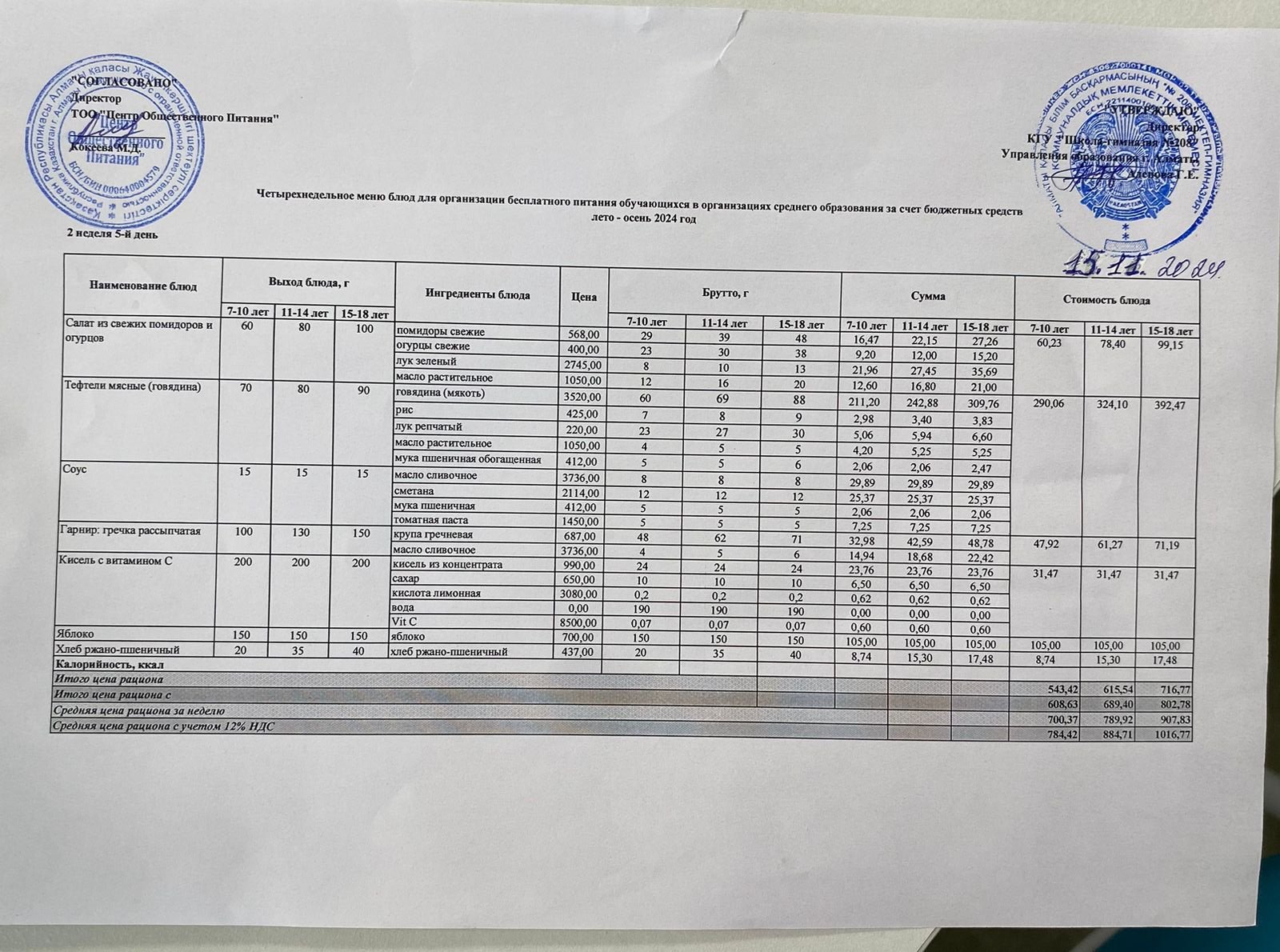 15.11.2024ж Асхана мәзірі » №208 мектеп-гимназия