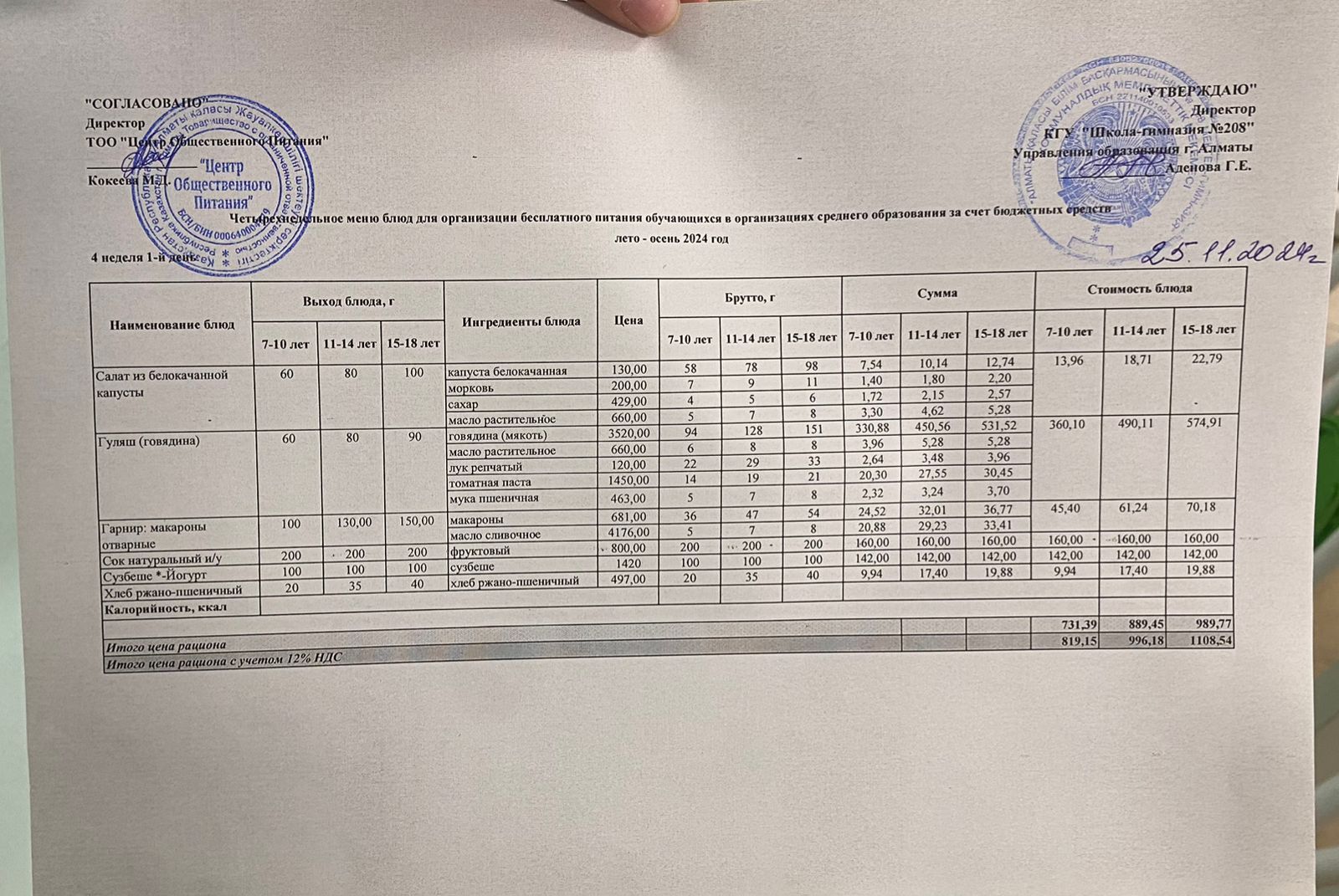 25.11.2024ж Асхана мәзірі » №208 мектеп-гимназия