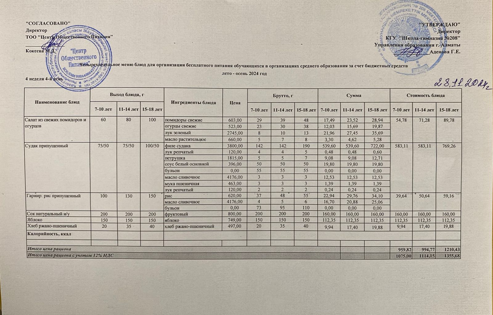 28.11.2024ж Асхана мәзірі » №208 мектеп-гимназия