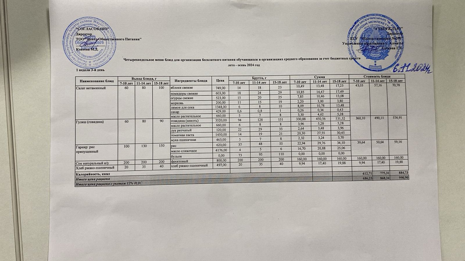 06.11.2024 Асхана мәзірі » №208 мектеп-гимназия