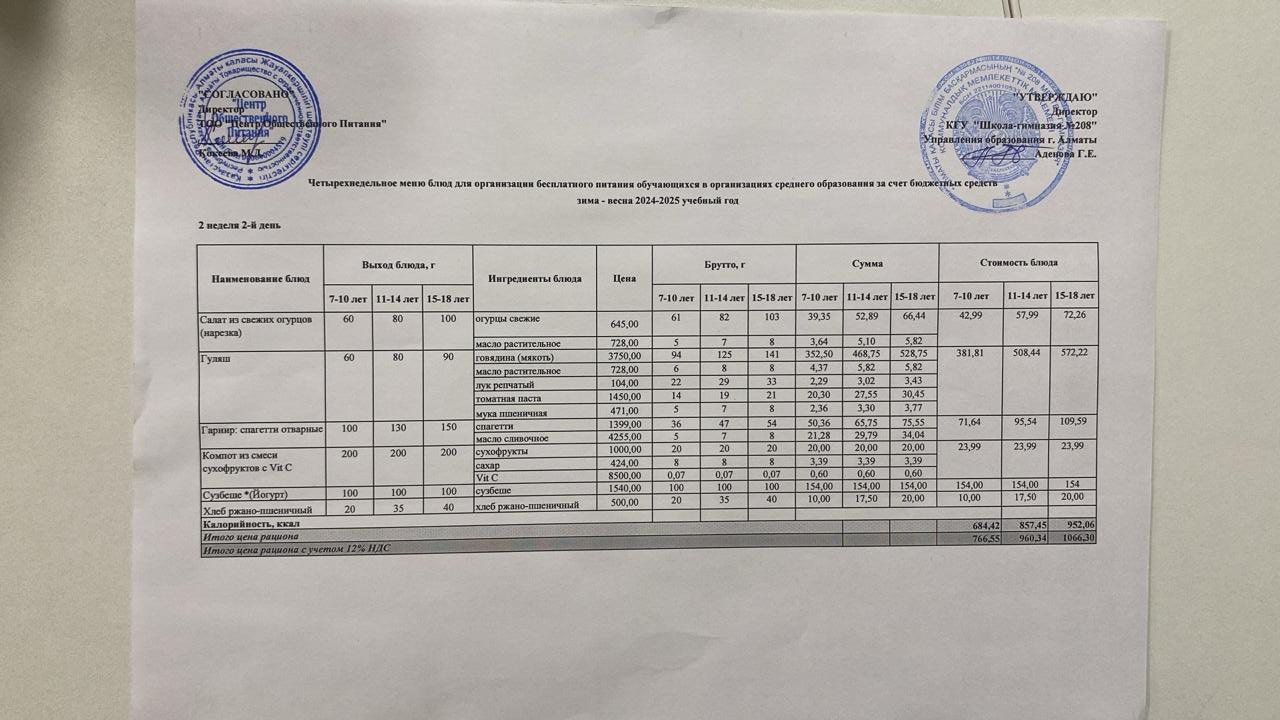 10.12.2024 Асхана мәзірі » №208 мектеп-гимназия
