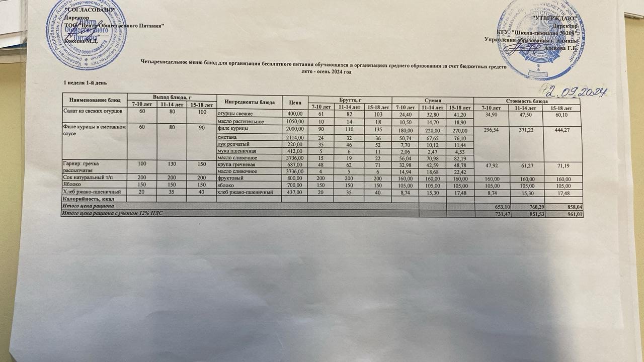 02.09.2024 Асхана мәзірі » №208 мектеп-гимназия