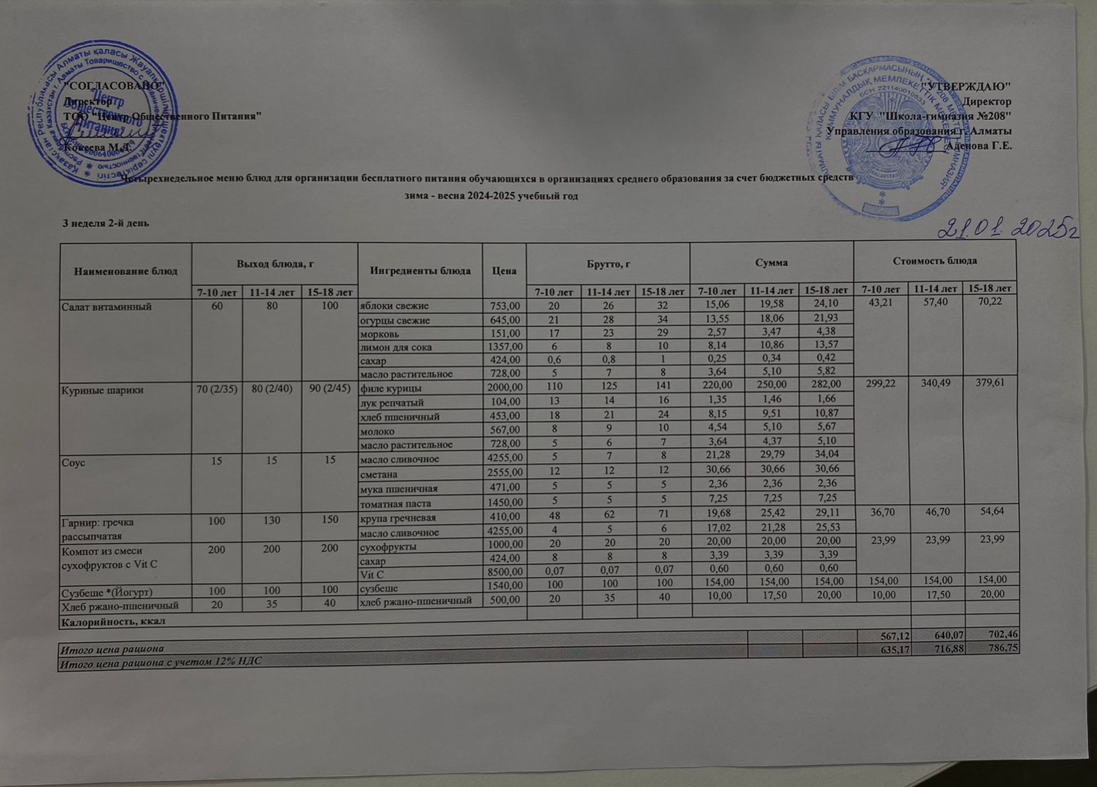 21.01.2025 Асхана мәзірі » №208 мектеп-гимназия