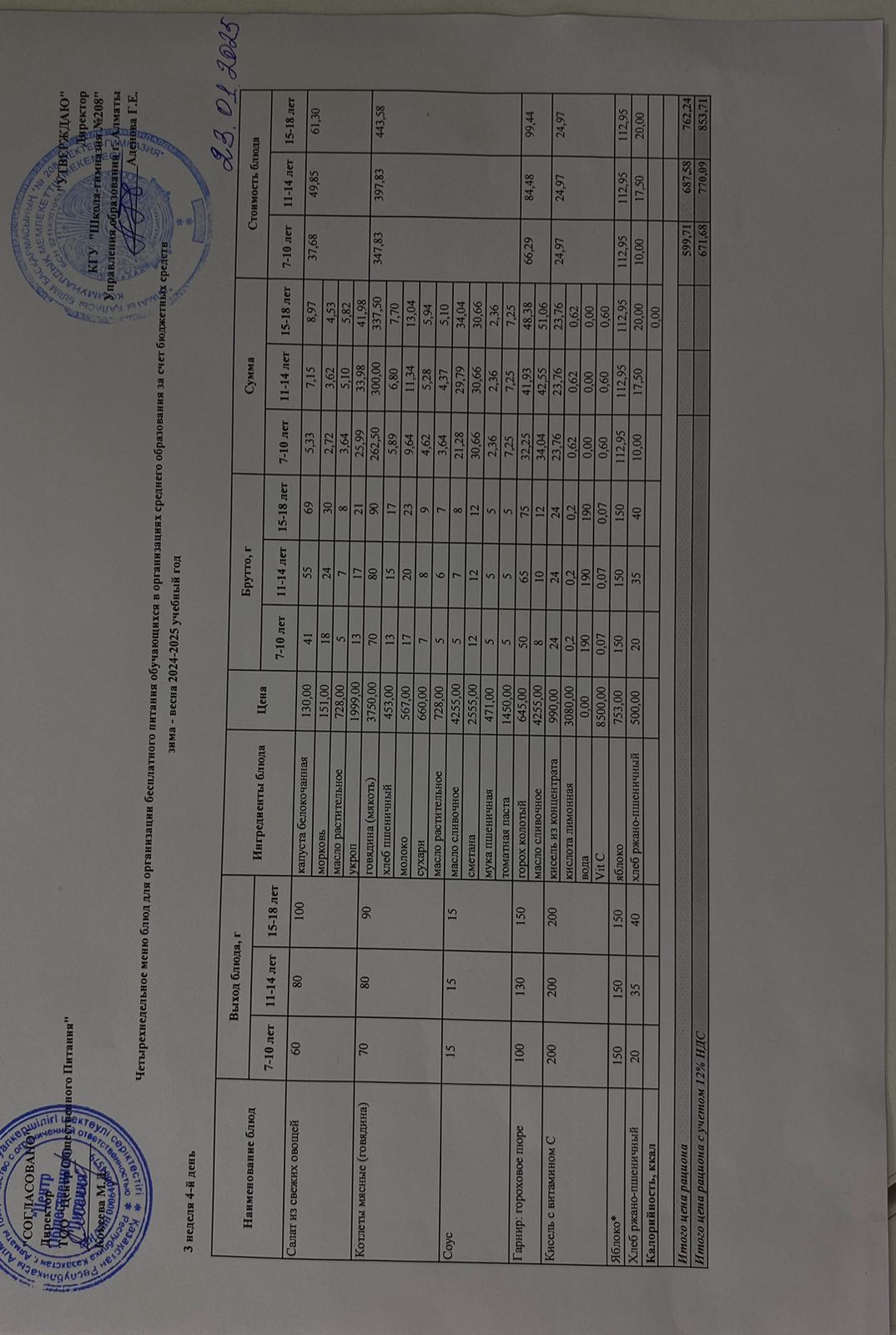23.01.2025 Асхана мәзірі » №208 мектеп-гимназия