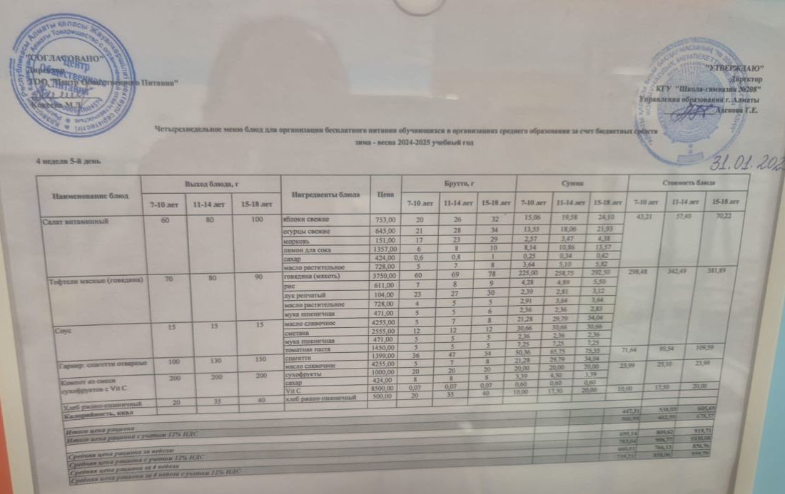 31.01.2025 Асхана мәзірі » №208 мектеп-гимназия