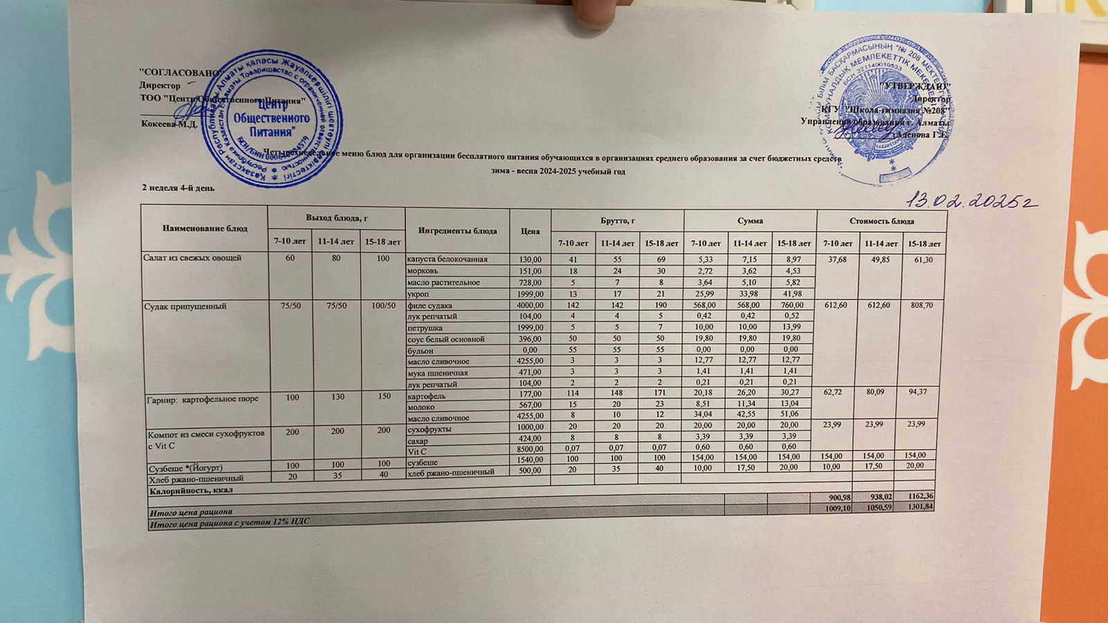 13.02.2025 Асхана мәзірі » №208 мектеп-гимназия