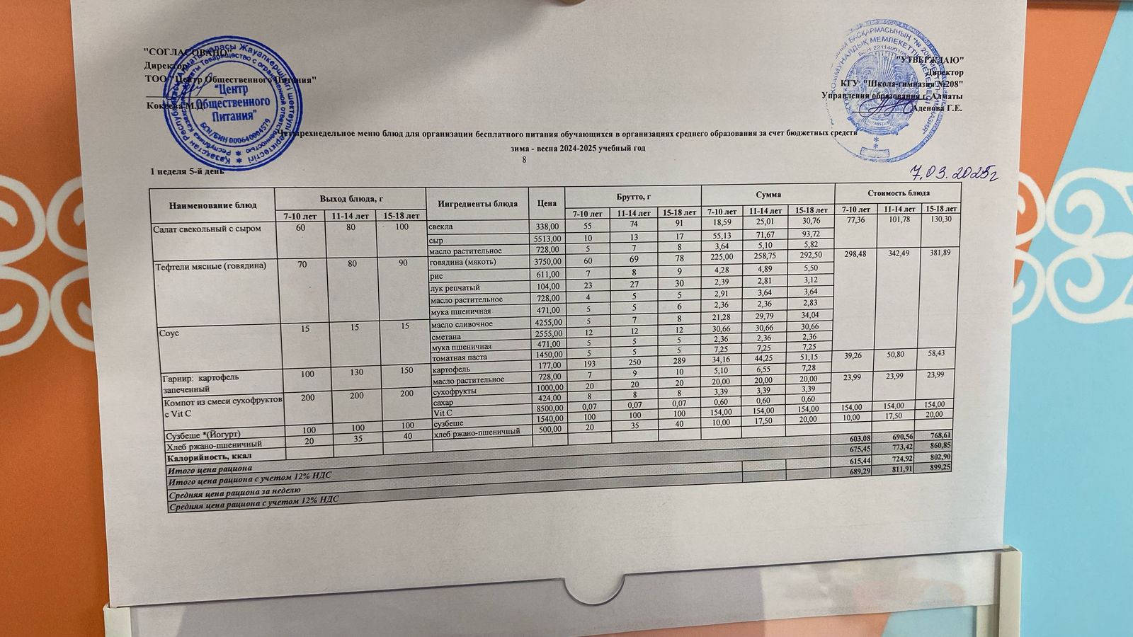 07.03.2025 Асхана мәзірі » №208 мектеп-гимназия