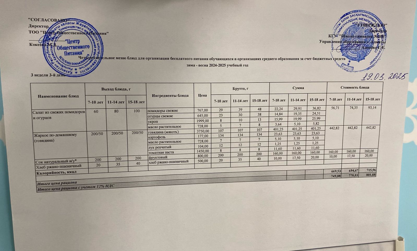 19.03.2025 Асхана мәзірі » №208 мектеп-гимназия
