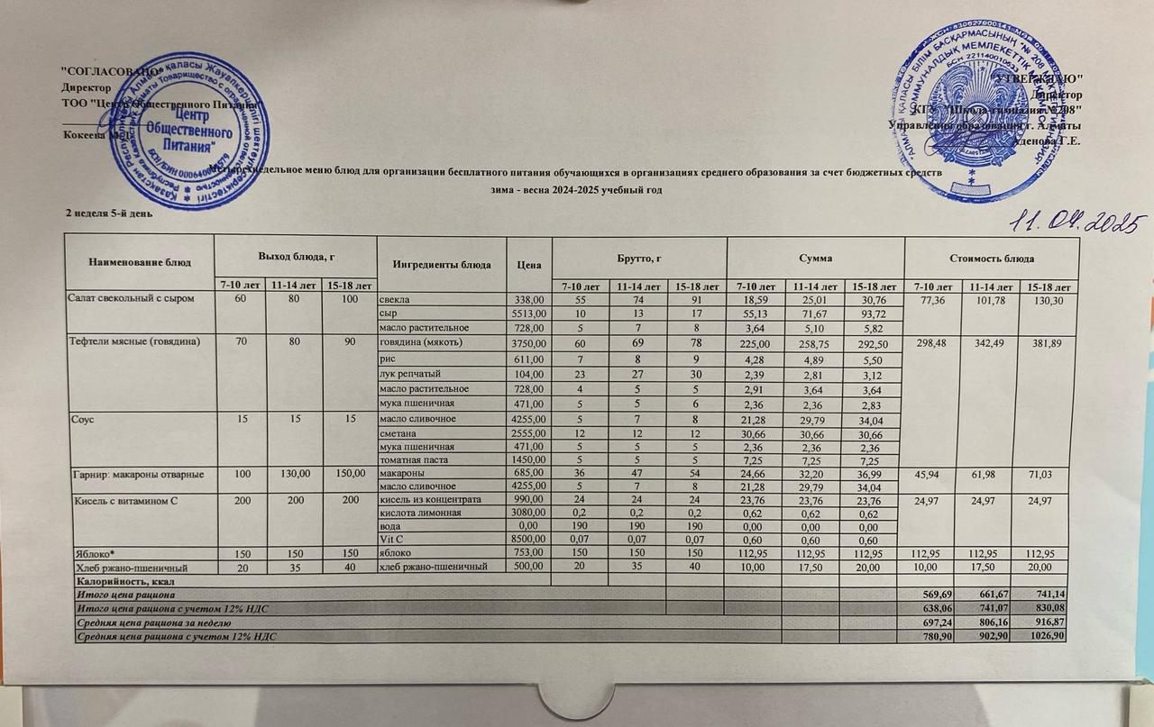 11.04.2025 Асхана мәзірі » №208 мектеп-гимназия