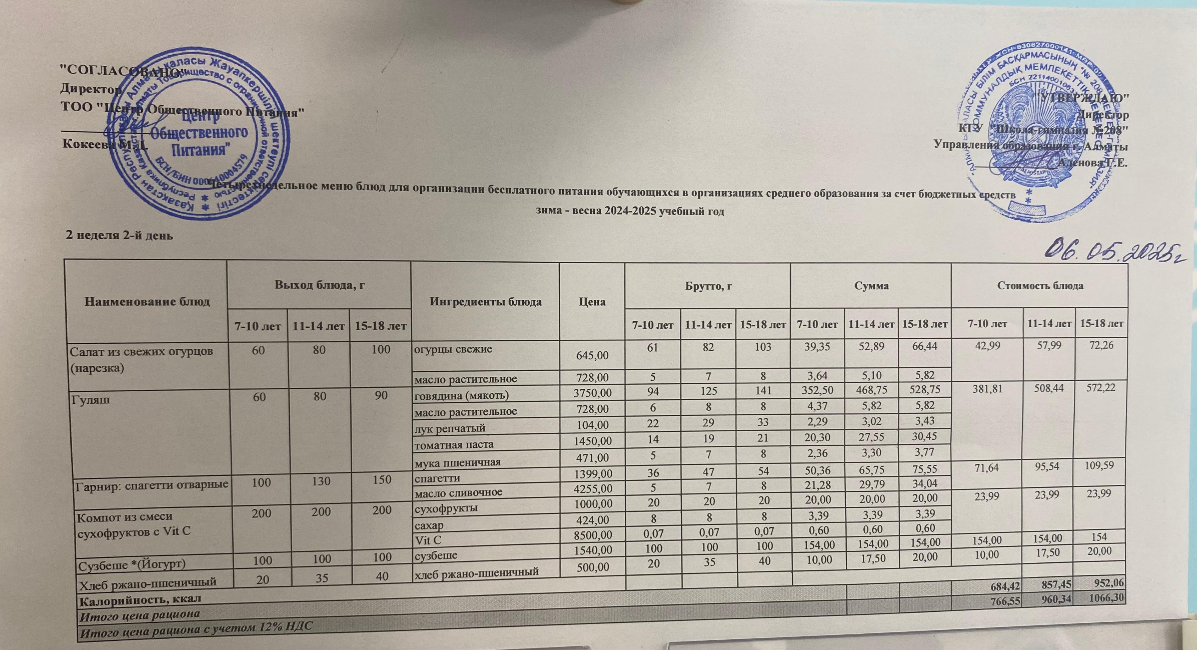06.05.2025 Асхана мәзірі » №208 мектеп-гимназия