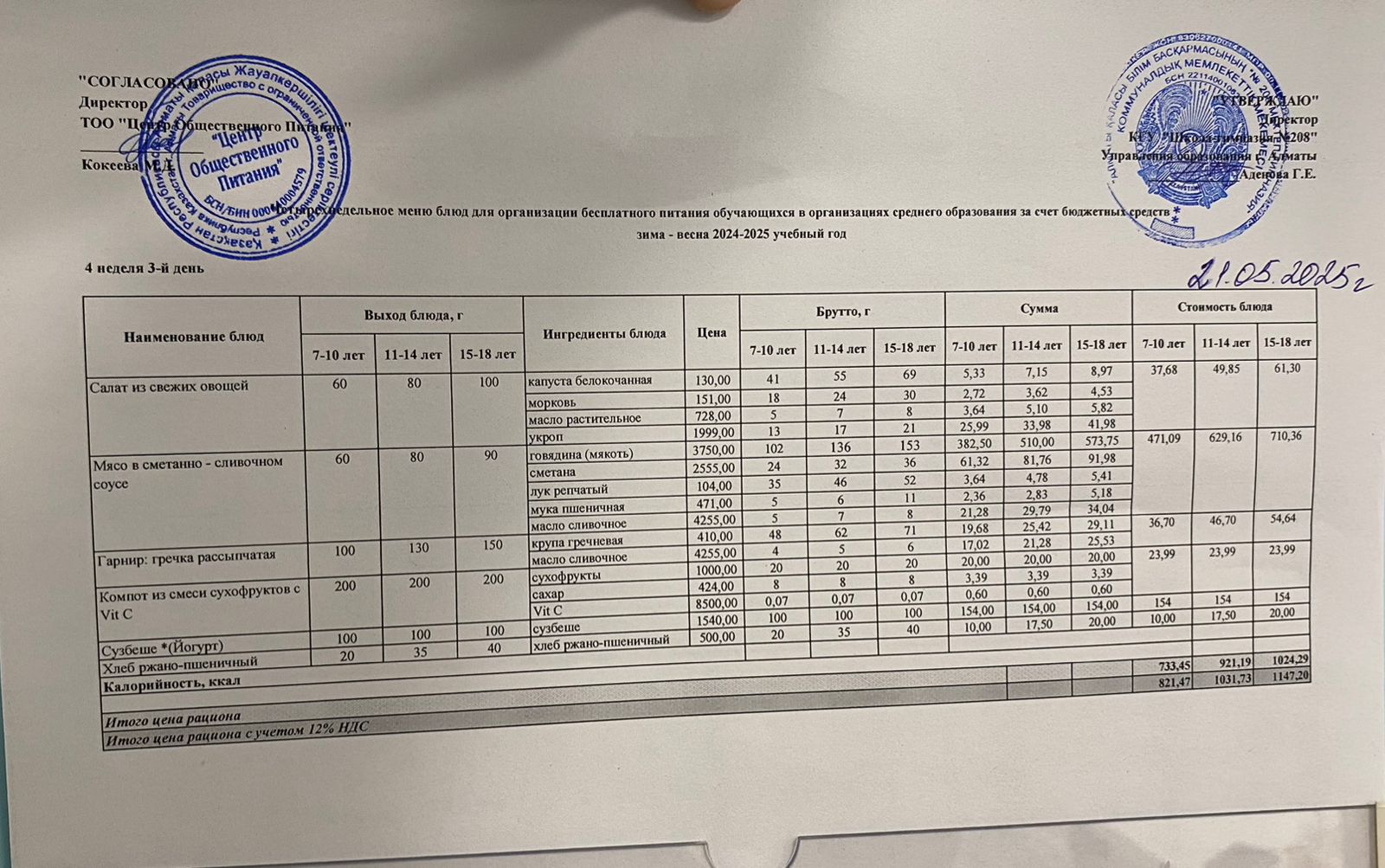 21.05.2025 Асхана мәзірі » №208 мектеп-гимназия