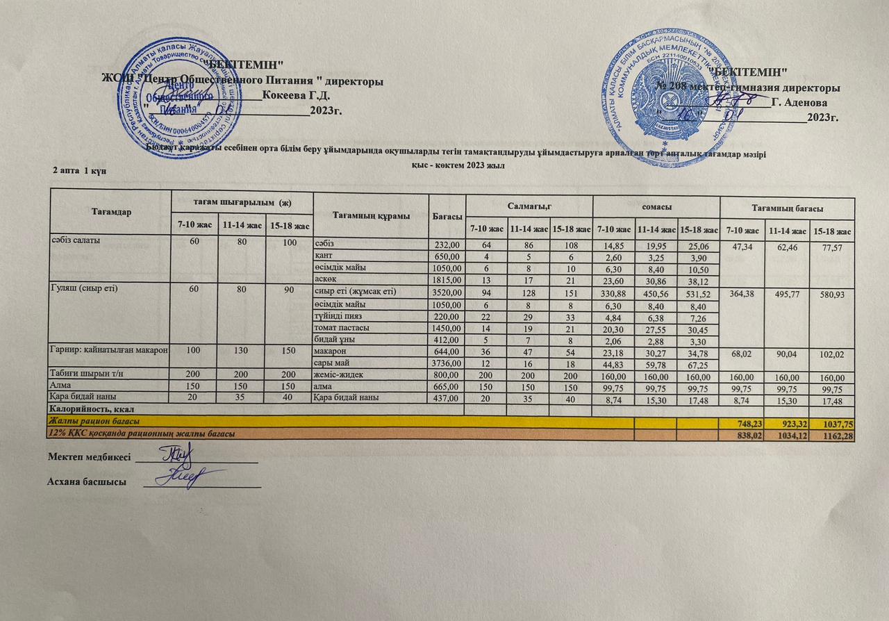 16.01.2023ж Асхана мәзірі » №208 мектеп-гимназия