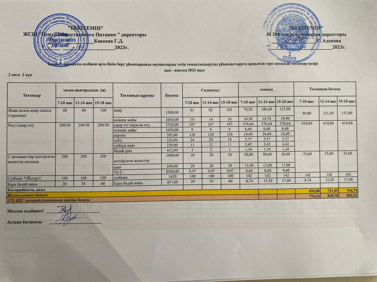 17.01.2023ж Асхана мәзірі » №208 мектеп-гимназия