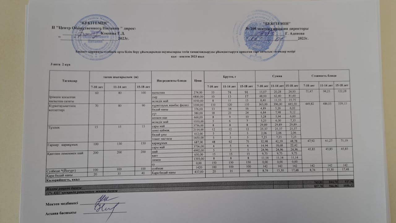 16.05.2023ж Асхана мәзірі » №208 мектеп-гимназия