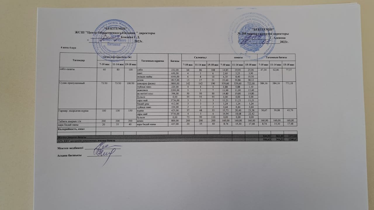 25.05.2023ж Асхана мәзірі » №208 мектеп-гимназия