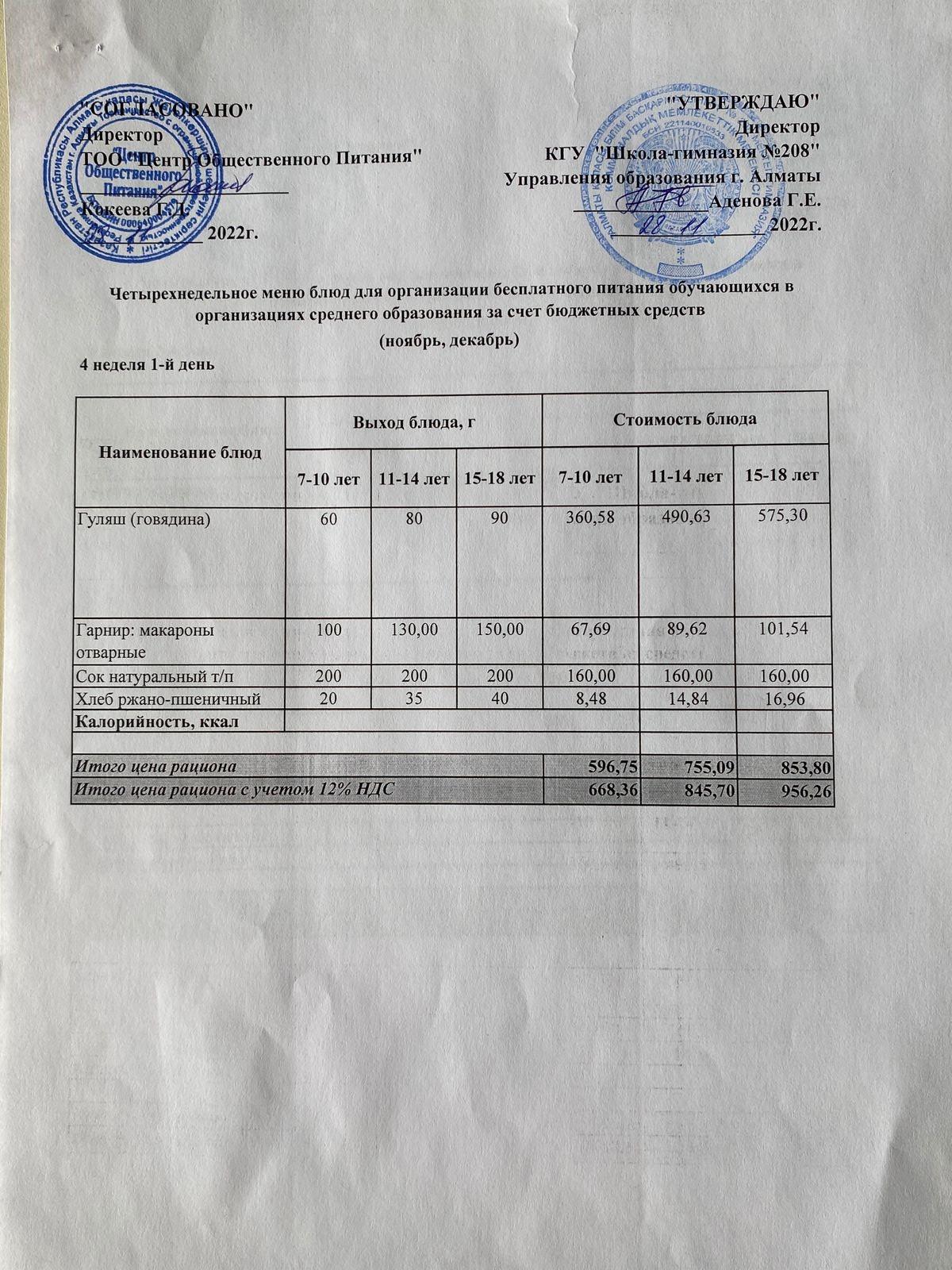 28.11.2022ж Асхана мәзірі » №208 мектеп-гимназия