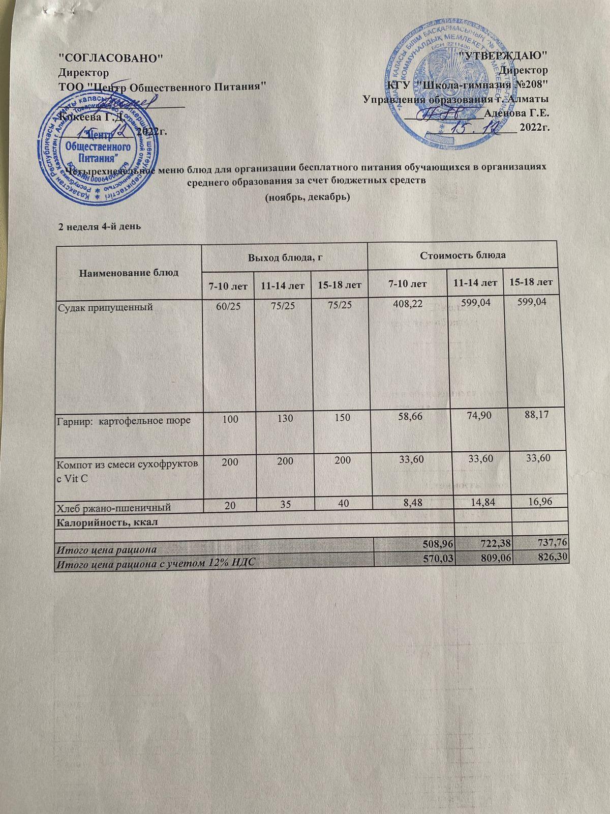 15.12.2022ж Асхана мәзірі » №208 мектеп-гимназия