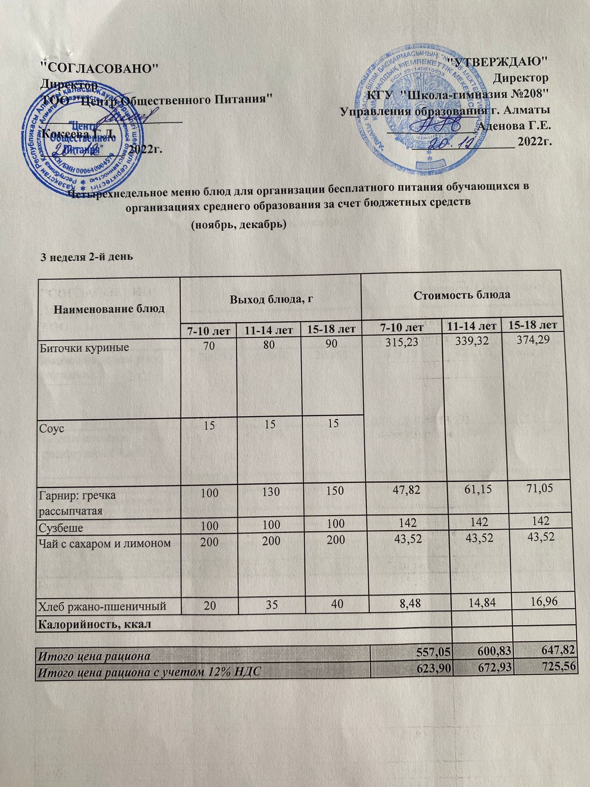 20.12.2022ж Асхана мәзірі » №208 мектеп-гимназия