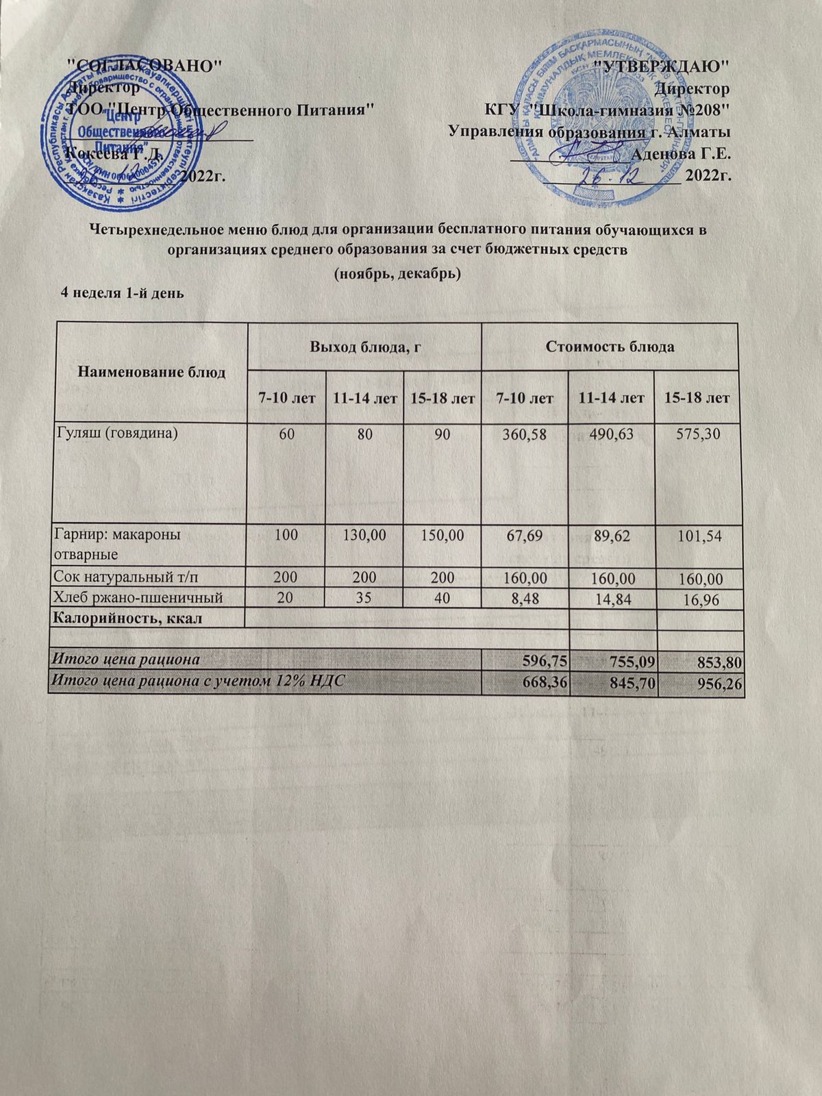 26.12.2022ж Асхана мәзірі » №208 мектеп-гимназия