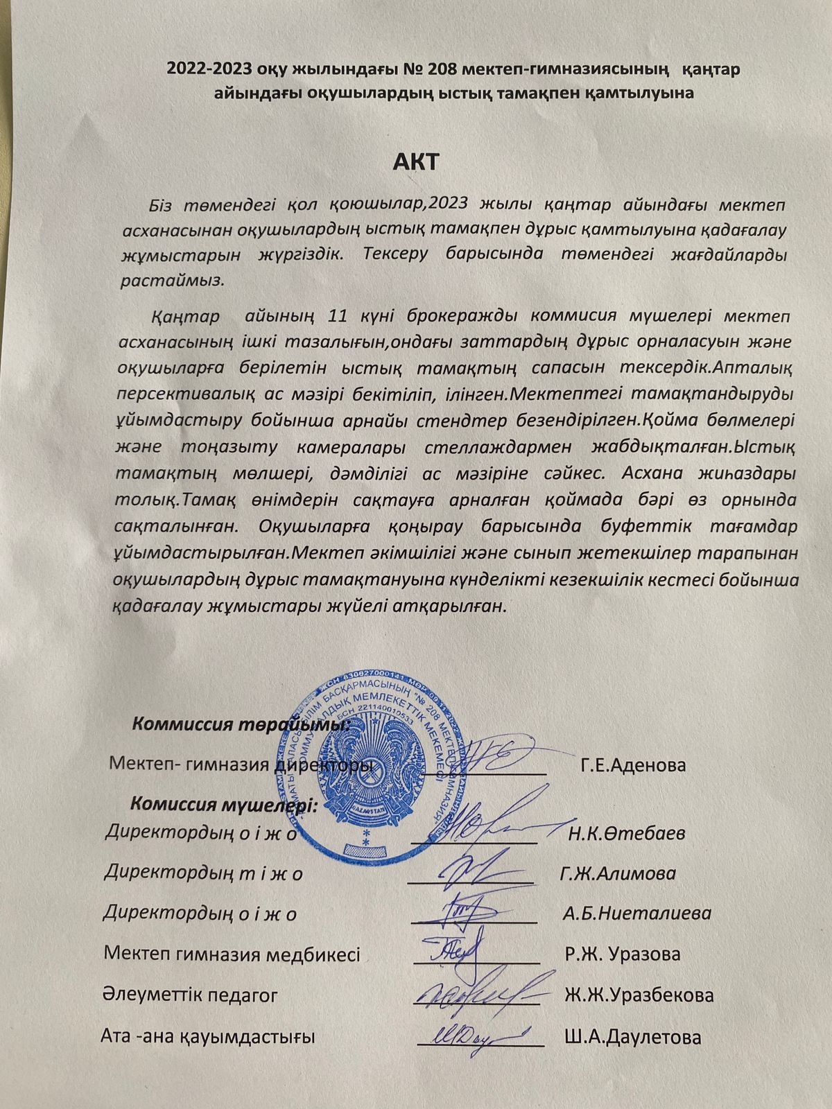 11 қаңтар 2023 0 1 2 3 4 5 2022-2023 оқу жылындағы 208 мектеп- гимназисының қаңтар айындағы оқушылардың ыстық тамақпен қамтылуына АКТ